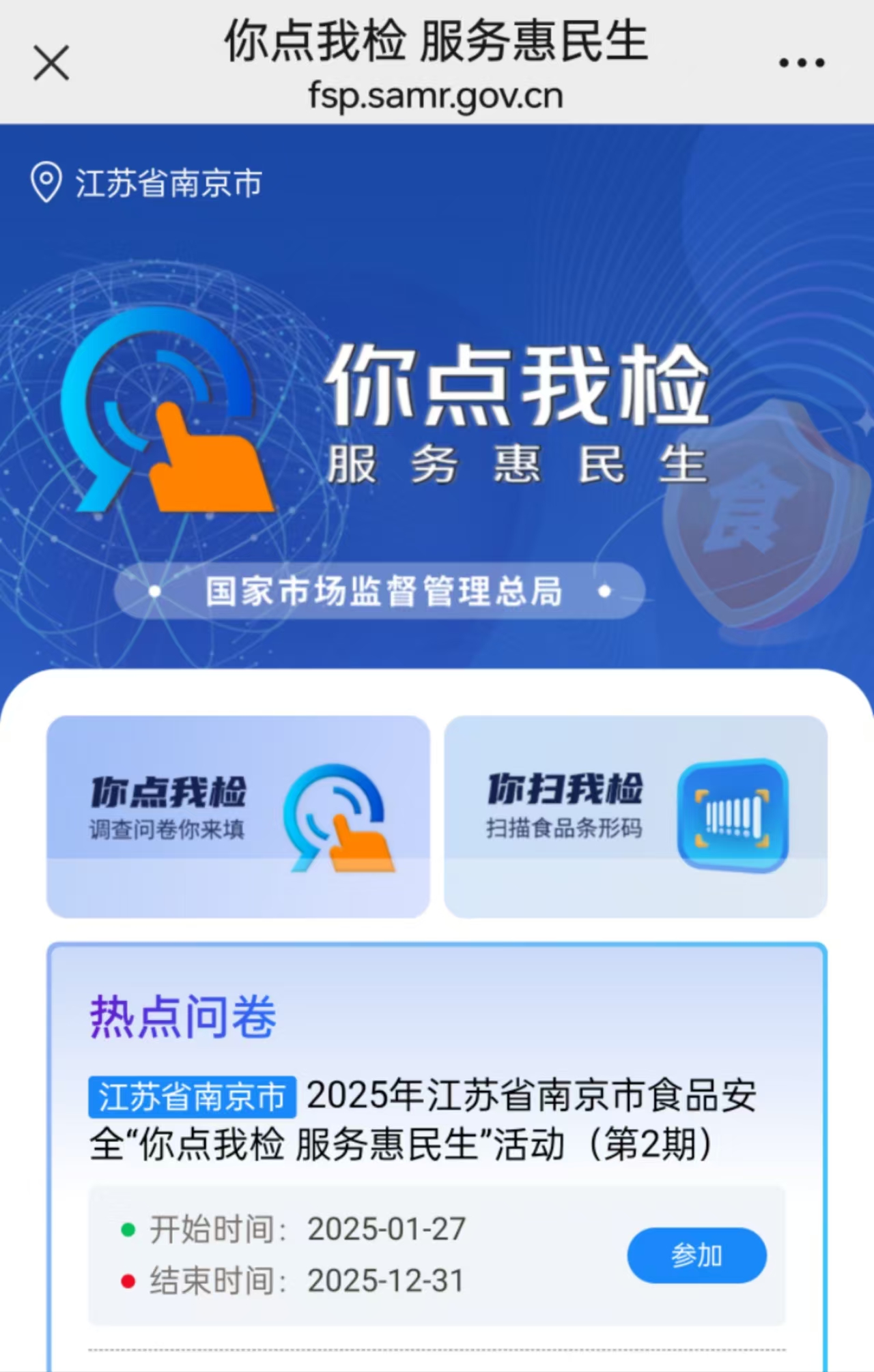 局诚邀您参与2025年食品安全 “你点我检 服务惠民生”问卷调查(第2期)