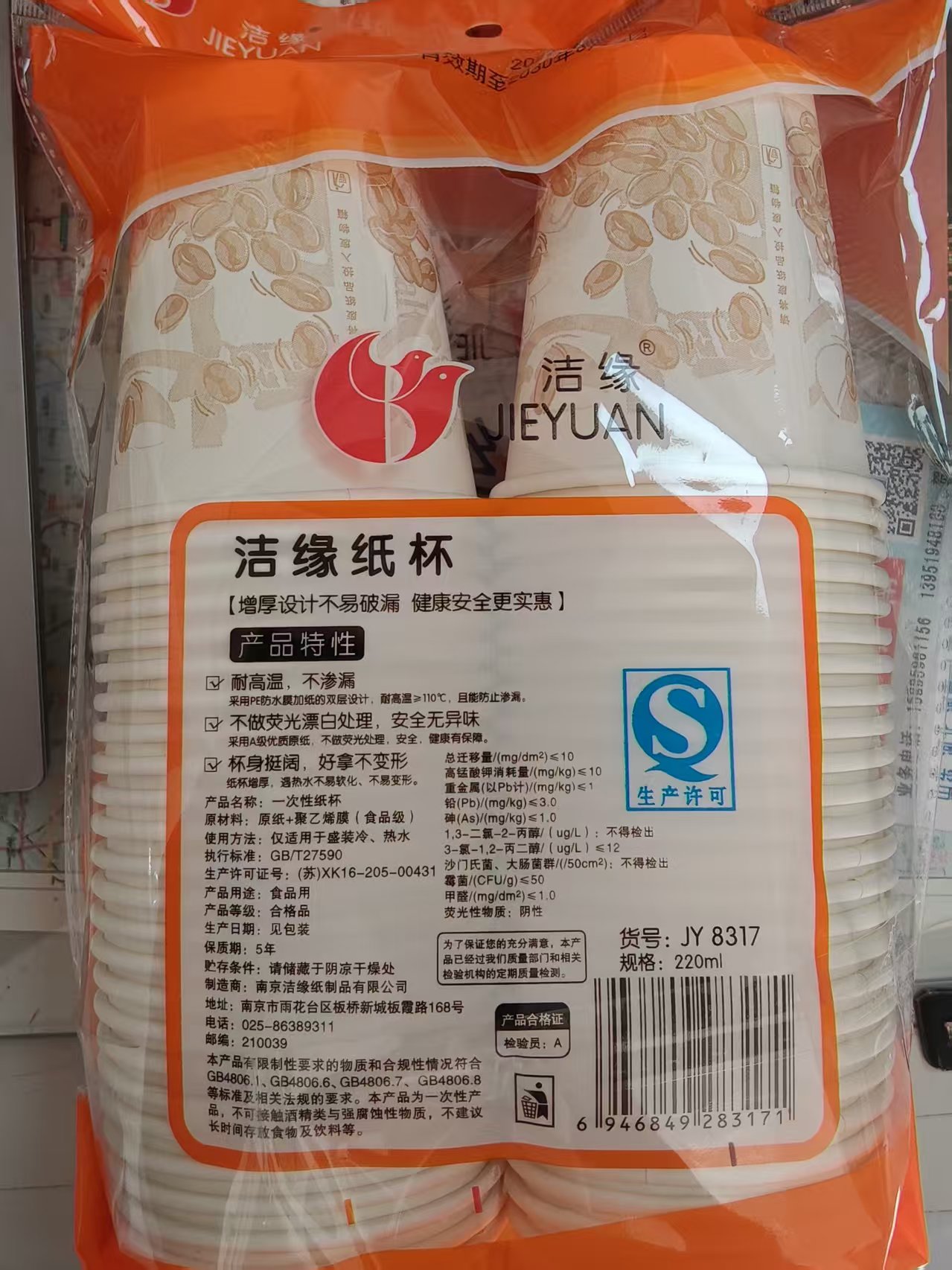日前,南京洁缘纸制品有限公司按照《消费品召回管理暂行规定》《江苏省缺陷消费品召回管理办法》的要求,主动向成人网站-av线上-成人视频 报告了召回计划,将自2025年12月29日起,召回2025年1月1日至2025年11月26日期间制造的洁缘牌JY 8317型纸杯(220ml),涉及数量为120000袋(50只/袋)。